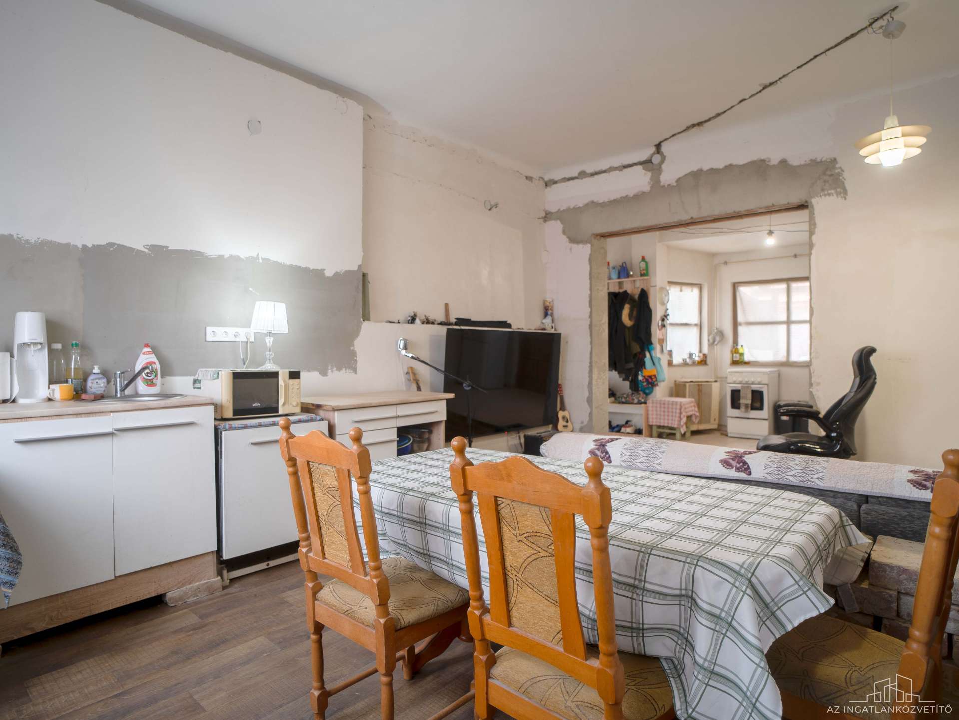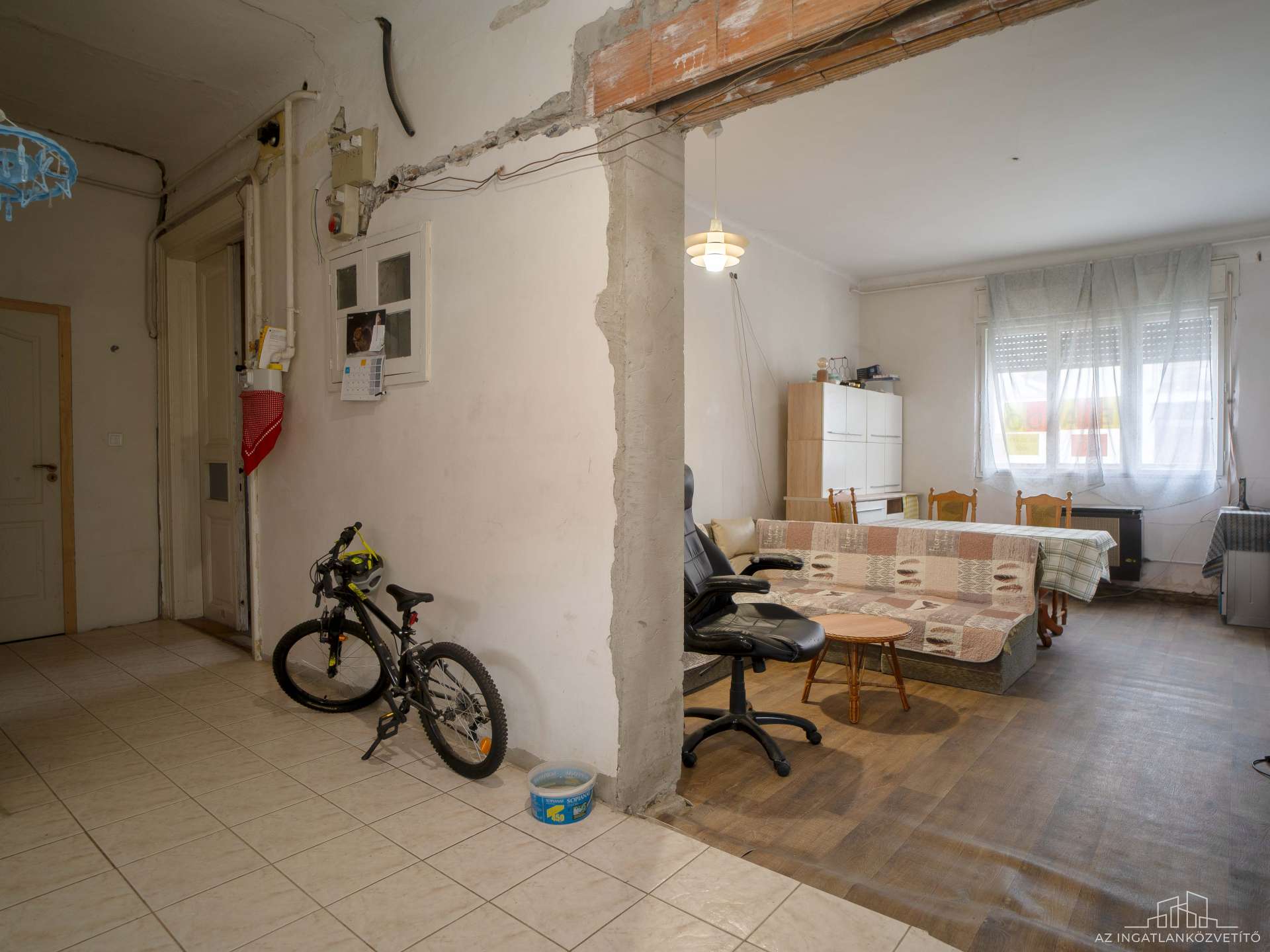 Tényszerűen: az elektromos hálózat rézvezeték, a vízvezetékek cserélve, a wc-k és a fürdő új burkolatot kapott. Az alaprajzi átalakítással a komfortérzetet javították. Igazából az átalakítások jó része megtörtént, jelenleg a véglegesítés van vissza. Nyílászárói utcafrontos kapcsolt gerébtokos ablakok, a többi helyiségben fa szerkezet hőszigetelő üvegezéssel.