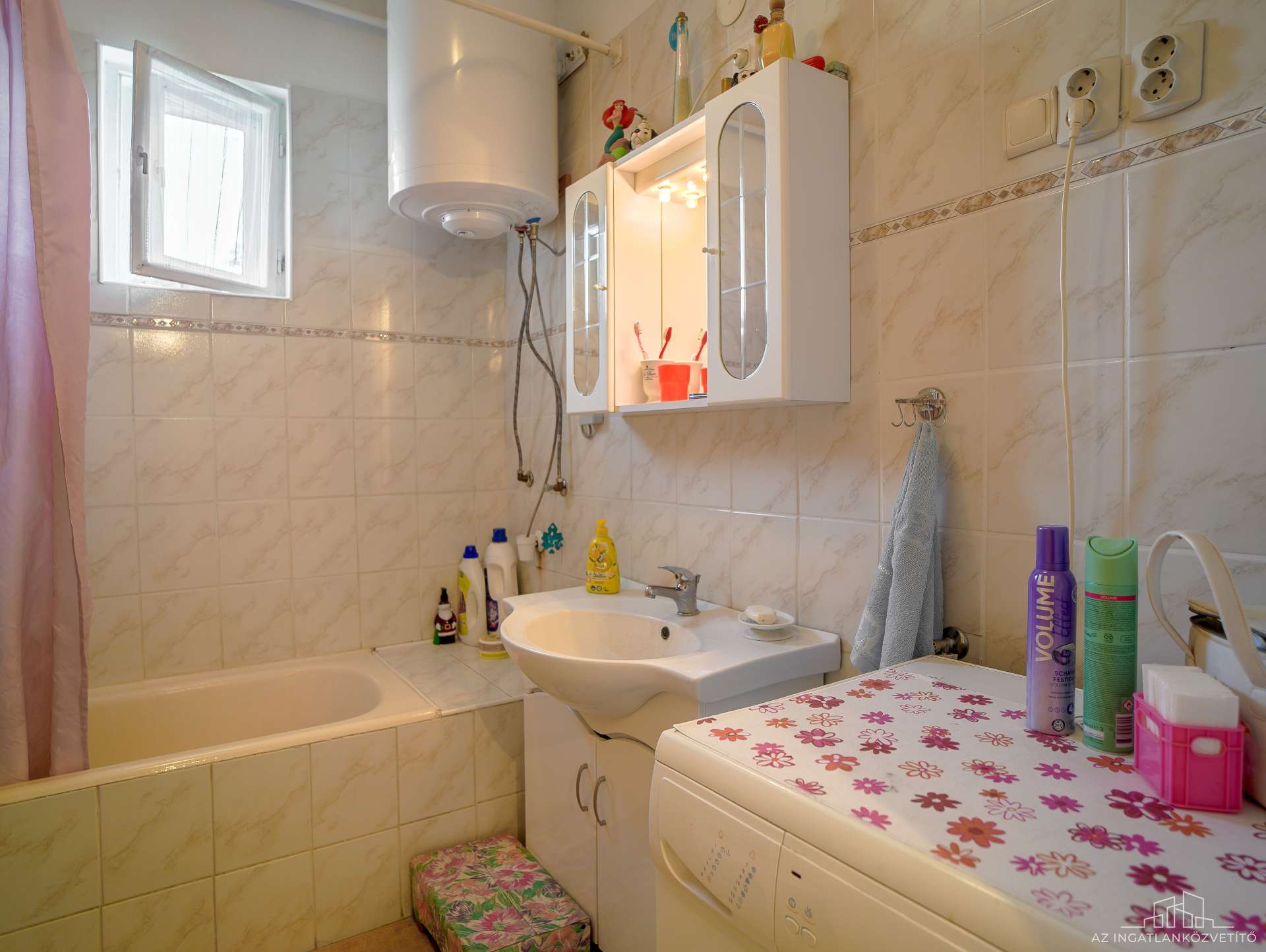 Melegvíz ellátása a fürdőben elektromos bojler, a konyhában átfolyós vízmelegítő.